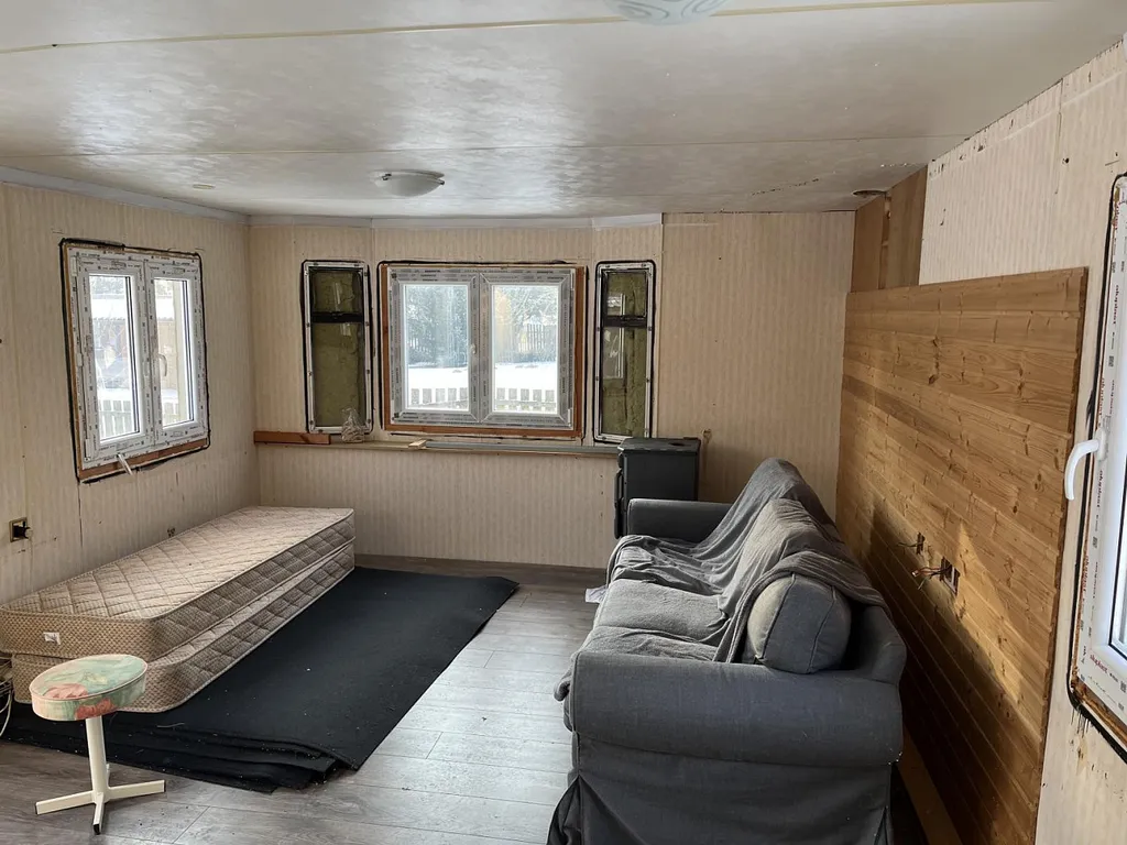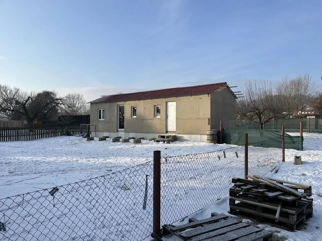 Na pozemku je umístěn zateplený mobilheim o dispozici 2+kk a rozměrech 3,5 × 11 m, který lze využívat k rekreačnímu bydlení nebo jako zázemí během výstavby nového objektu. Dále se zde nachází dřevěná pergola se základovou deskou, dílna a menší dřevěné přístřešky.