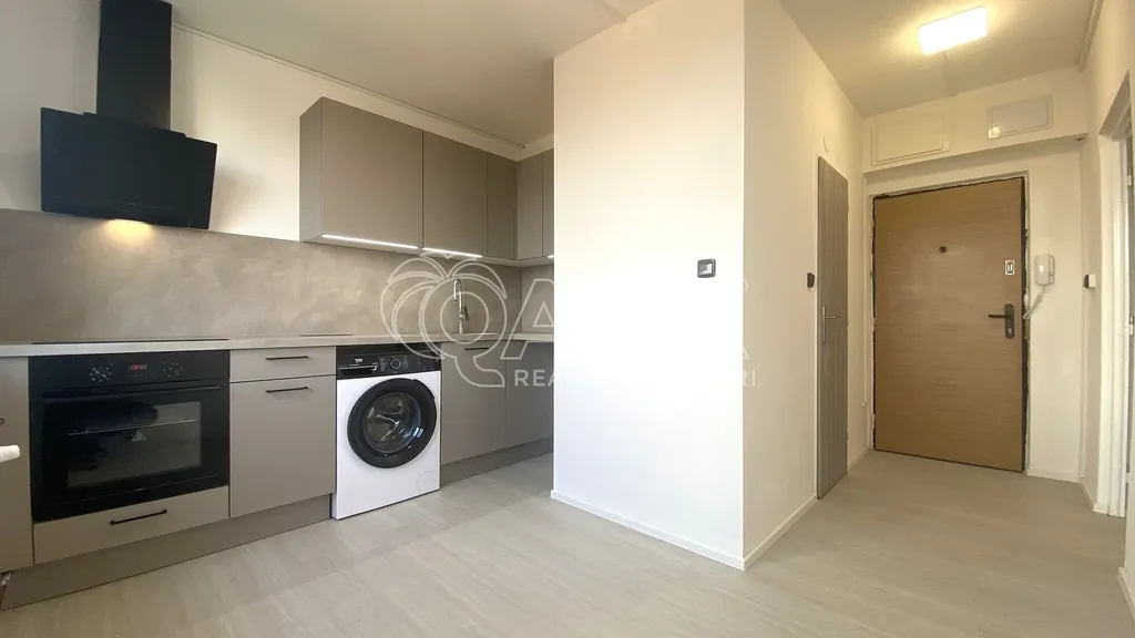 Interiér překvapí pečlivě řešeným prostorem, který zahrnuje užitnou plochu 28 m². Byt se skládá z prostorného obývacího pokoje s příjemným osvětlením, které vytváří ideální prostředí pro odpočinek i práci. Kuchyně je vybavena vestavěnými elektrospotřebiči. V koupelně je sprchový kout, WC je šikovně odděleno od koupelny příčkou.