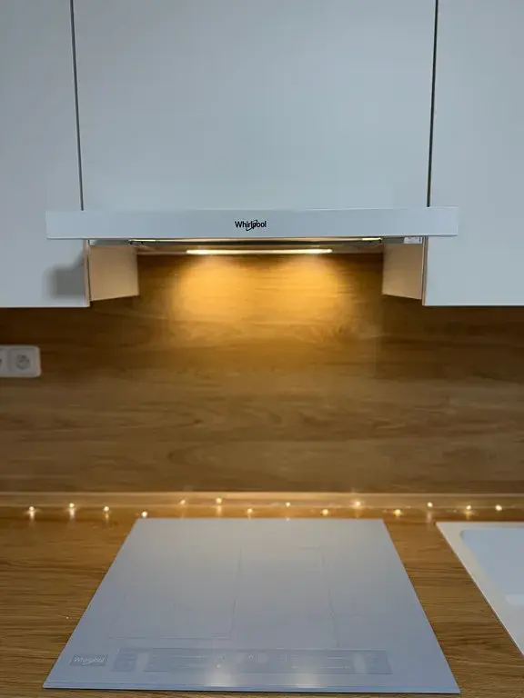 Kuchyňská linka je nová a vybavena vestavěnými spotřebiči: