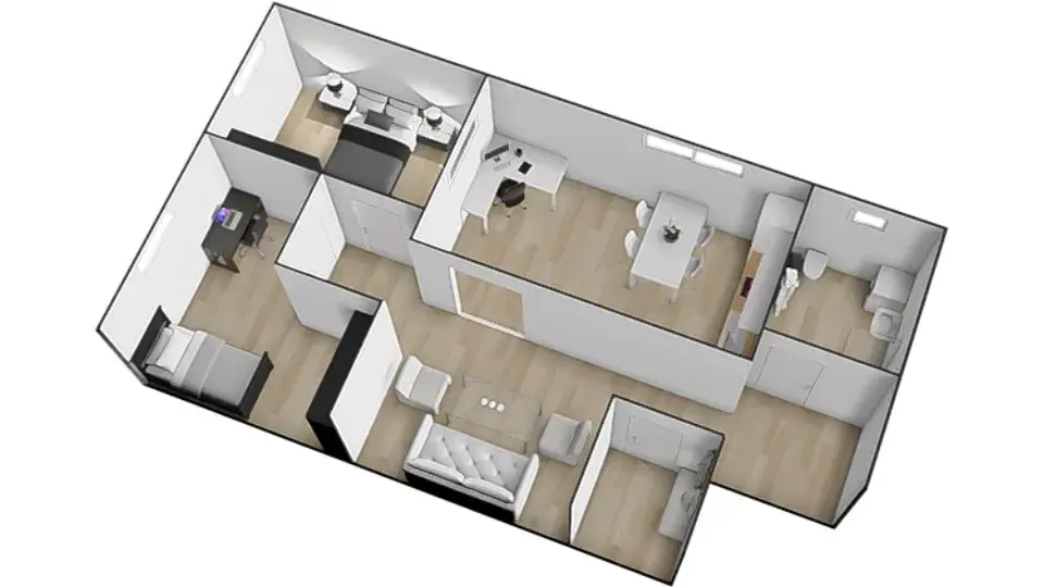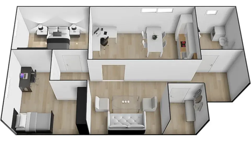 • dvě samostatné ložnice o velikosti 12,8 m² a 15,3 m²,