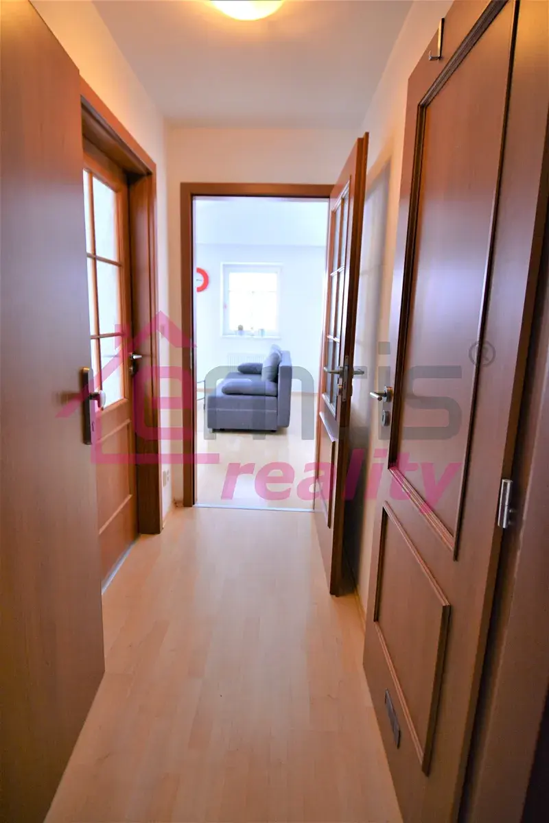K dlouhodobému pronájmu nabízíme tento byt, situovaný v 2.patře menšího cihlového domu bez výtahu v ul. Za Strahovem. Byt je o dispozici 2+kk a rozloze 42 m2 + terasa12 m2. Z předsíně se vstupuje po pravé straně do koupelny a WC. Proti vstupním dveřím je pak obývací pokoj s kuchyňským koutem, po levé straně chodby pak ložnice. Obě obytné místnosti mají výstup na terasu. Kuchyňská linka včetně lednice s mrazákem, elektrická varná deska, digestoř, pračka.