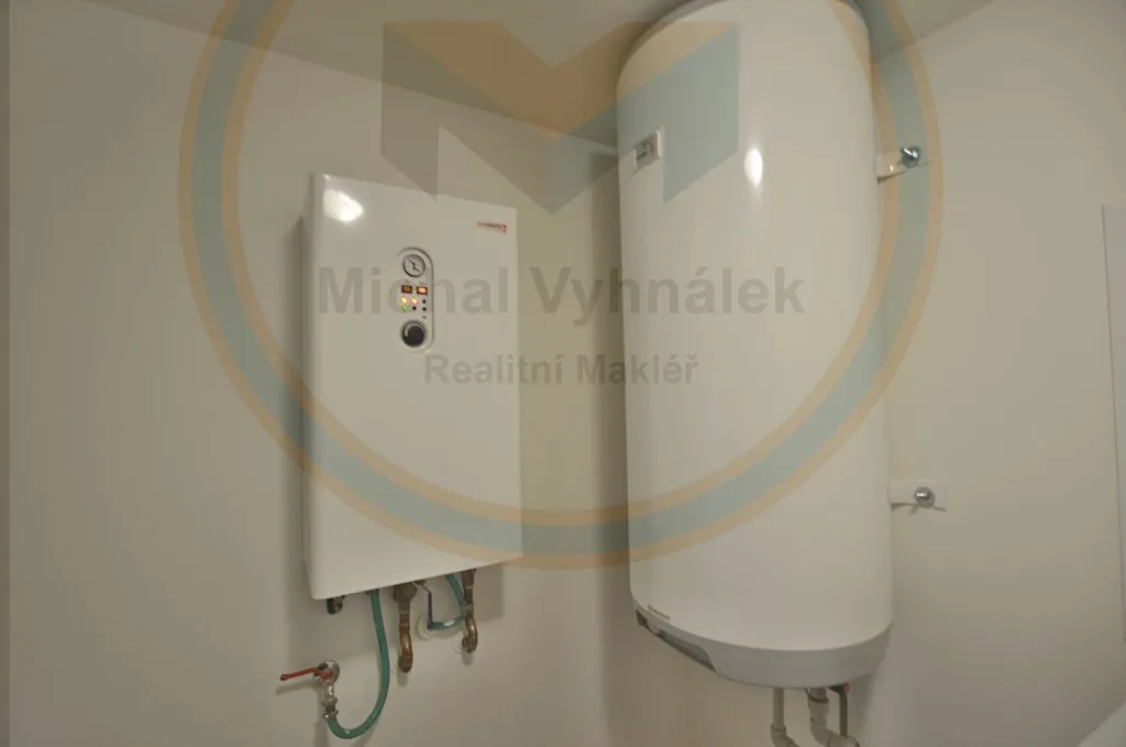 Vytápění domu je etážové, zajištěné elektrickým kotlem, v obytném prostoru je navíc funkční krb. V části domu je podlahové vytápění.
