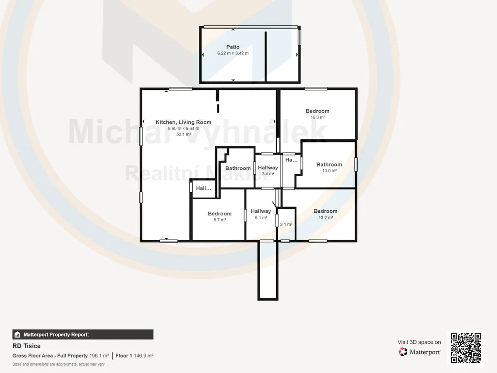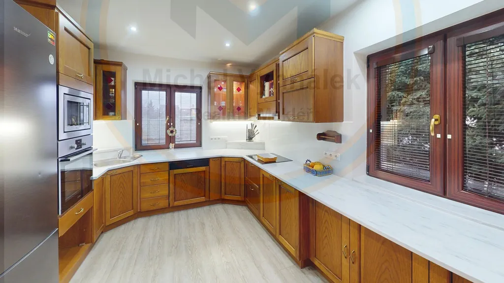 Zprostředkuji prodej zděného rodinného domu typu bungalov 4+kk o celkové užitné ploše 154,84 m², s přímým vstupem na krytou terasu (20 m²), bazénem (18 m³), zděnou garáží, krytým parkovacím stáním, skladovými přístřešky a skleníkem, vše na vlastním pozemku o výměře 1 244 m².