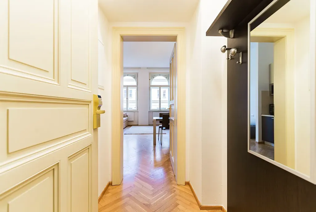 Krásný reprezentativní byt k pronájmu po kompletní nákladné rekonstrukci v centru Prahy na lukrativní a žádané adrese a u této nabídky neplatíte žádnou provizi! Tento elegantní byt 2+kk se nachází ve třetím patře cihlové budovy s výtahem. Budova prošla kompletní rekonstrukcí, disponuje recepcí a je situována přímo v centru, což poskytuje ideální spojení mezi bydlením a dostupností do centra jak za prací, tak za zábavou. Byt je k nastěhování ihned.