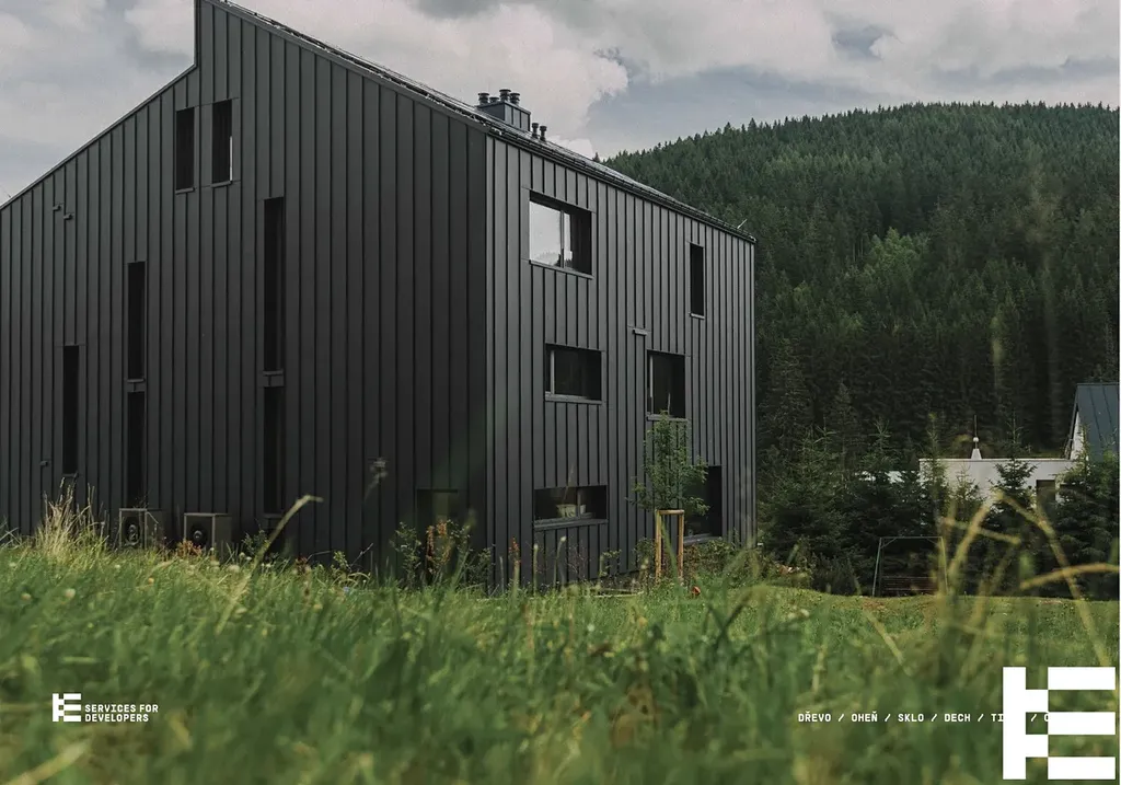 Architektura domu citlivě propojuje moderní design s horským charakterem – dřevo, oheň, sklo, dech, ticho, čas.