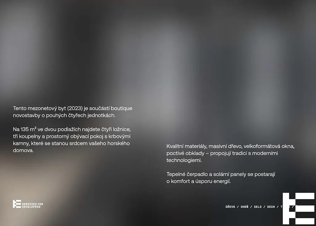 Tento výjimečný mezonetový byt o dispozici 5+kk se nachází v butikové novostavbě pouhých čtyř jednotek, přímo naproti hlavnímu lyžařskému svahu v Peci pod Sněžkou.
