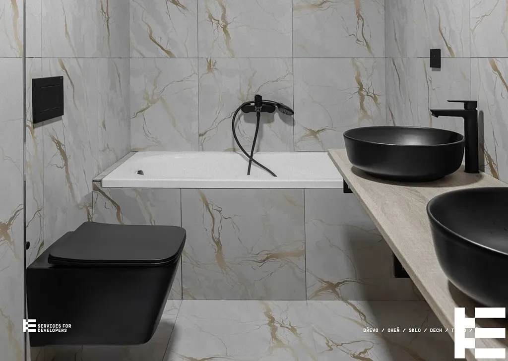 • Čtyři ložnice a dvě koupelny v prémiových materiálech, toalety k