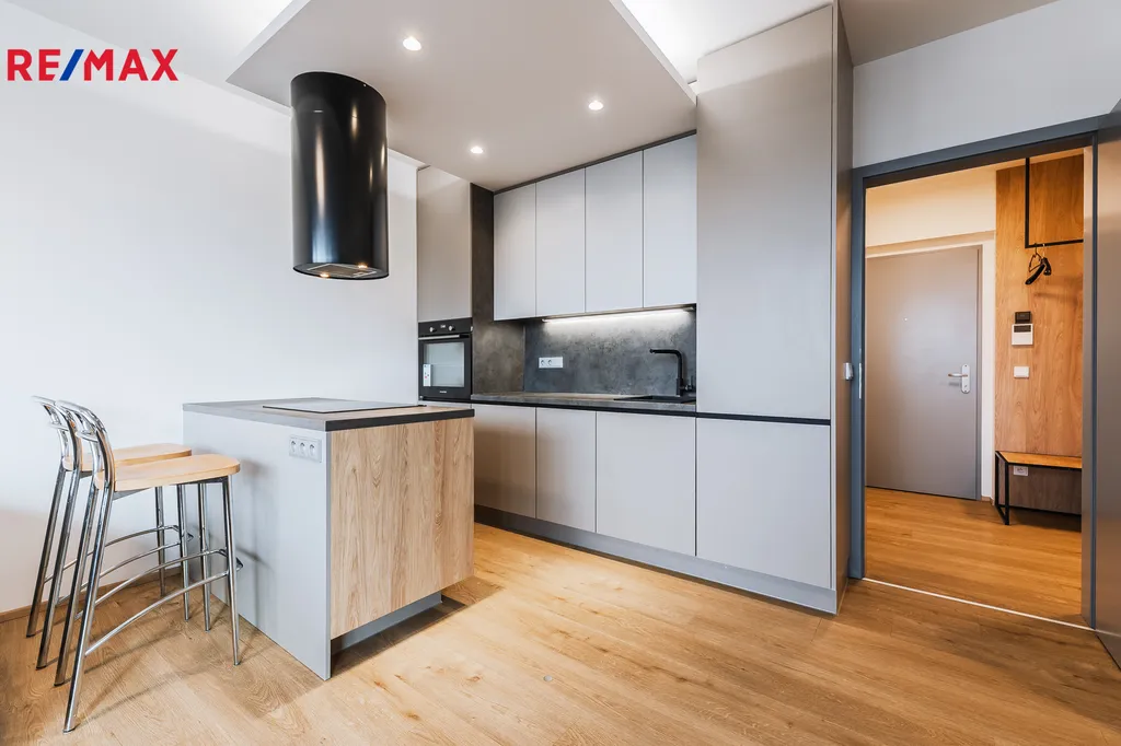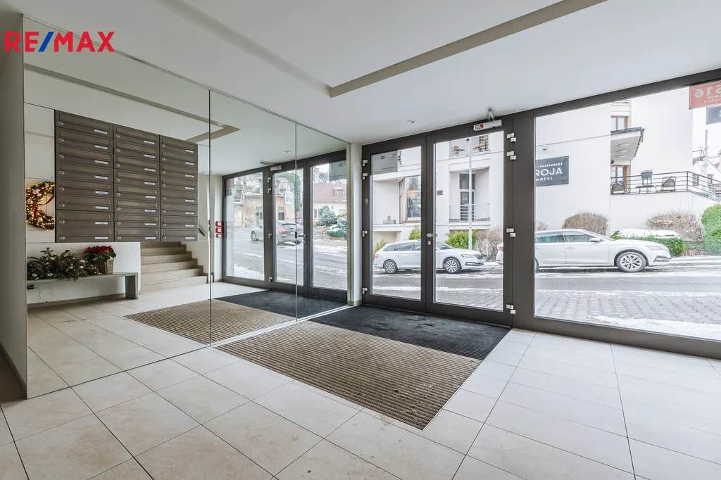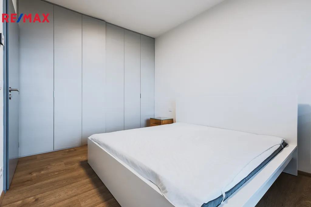 Byt je proveden ve vysokém standardu a nabízí podlahové vytápění, elektrické žaluzie a dostatek úložných prostor díky vestavěným skříním v předsíni i ložnici. Součástí kuchyňské linky jsou vestavěné spotřebiče včetně myčky. K bytu náleží sklepní kóje.