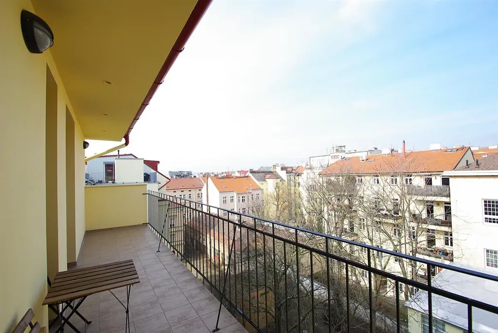 Klimatizovaný zařízený byt 3+1 (2 ložnice, 1 koupelny), o obytné ploše 100 m2, je situovaný v 5.patře zrekonstruované budovy s výtahem, v oblíbené rezidenční lokalitě na Vinohradech, v ulici Máchova.