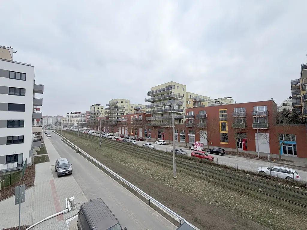 Byt se nachází ve 2. patře (3. NP) osmipodlažního domu s výtahem a součástí jeho ceny pronájmu je i garážové stání přímo v domě. K dispozici je kočárkárna/kolárna. Lokalita nabízí široké možnosti procházek či využití dobré občanské vybavenosti (Billa, Albert) a výborného spojení do centra města ze zastávky tramvaje Náměstí Olgy Scheinpflugové – č. 4, 5, a 94 přímým spojem na Václavské nám. za 27 minut nebo za 14 minut k metru B Smíchovské nádraží.