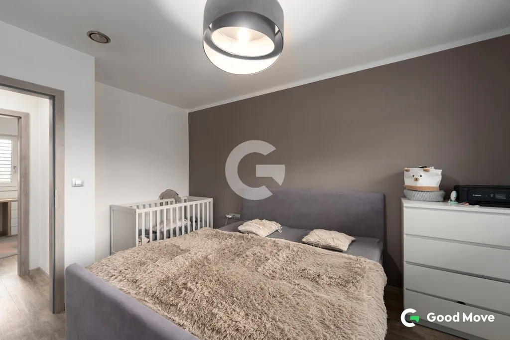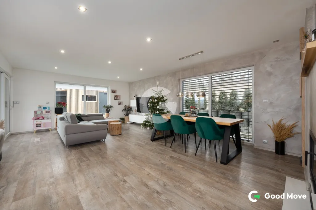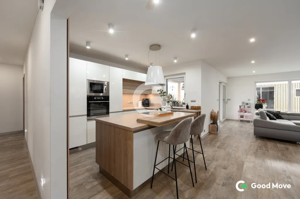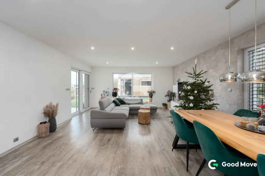 Dispozice domu je 4+kk o velikosti 111 m2 vč. technické místnosti a šatny v ložnici. Veškeré vybavení, které se v domě nachází je součástí prodeje.