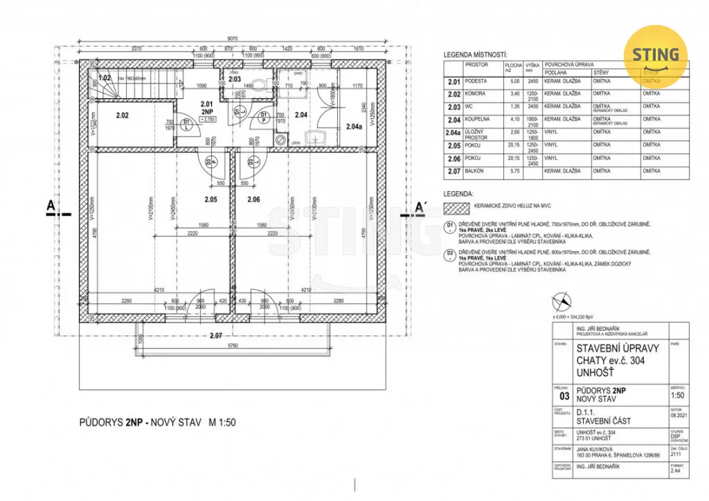 Patro: příprava pro 2 ložnice, šatnu, koupelnu