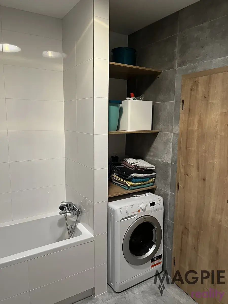 Byt je celý moderně vybaven a ve výborném stavu. V zádveří a v ložnici využijete vestavěné skříně a botník, v koupelně pak kombinovanou pračku i se sušičkou. ideálně se pronajme vybavený nebo dle domluvy.