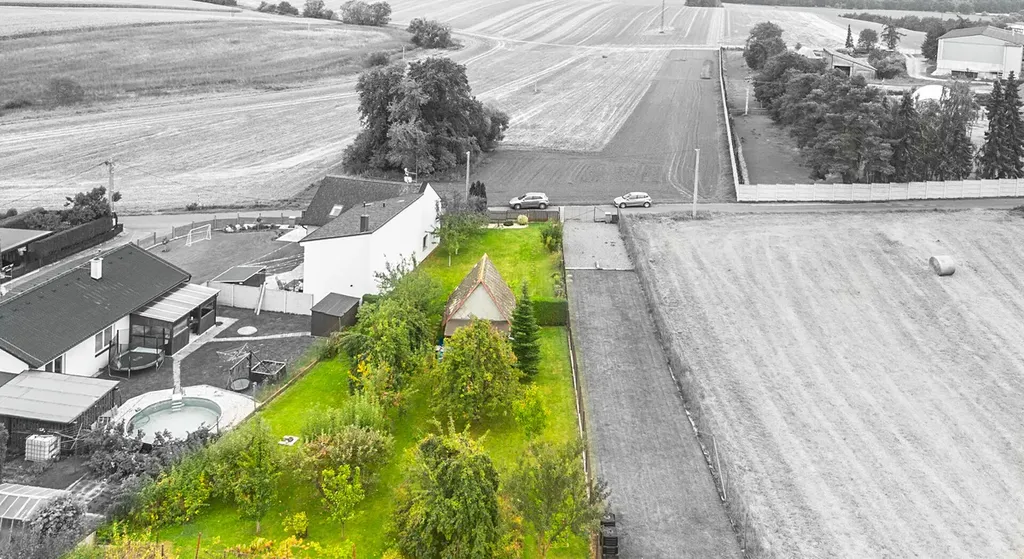 Pozemek je nejen kompletně rovinatý, ale také velmi prakticky členěný. Přední část tvoří prostorná, volná plocha, která je přímo určená pro výstavbu rodinného domu a vytvoření potřebného zázemí. Uprostřed parcely se nachází stávající zahradní chatka, která je napojená na elektřinu a můžete ji skvěle využít jako dočasné zázemí během výstavby, pro uskladnění materiálu nebo pro víkendovou rekreaci ještě před zahájením stavby vašeho nového domova. Za chatkou pak plynule navazuje klidová zóna v podobě zahrady se vzrostlým ovocným sadem.