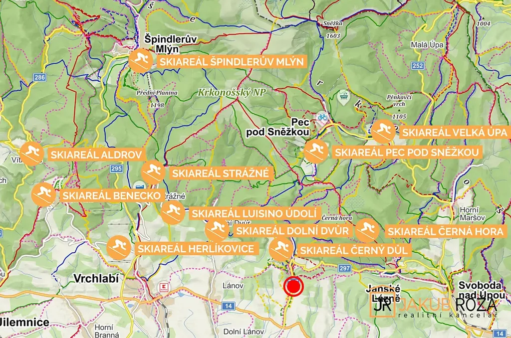 V blízkém okolí s možností dopravy skibusem jsou také Skiresorty Černá Hora, Pec pod Sněžkou, Pomezní boudy a Velká Úpa (Portášovy Boudy), tvořící jeden skiareál s jedním skipasem a 50 km sjezdovek. Poloha je výhodná i pro milovníky běžeckého lyžování, skialpinismu, pěší turistiky a cyklistiky.