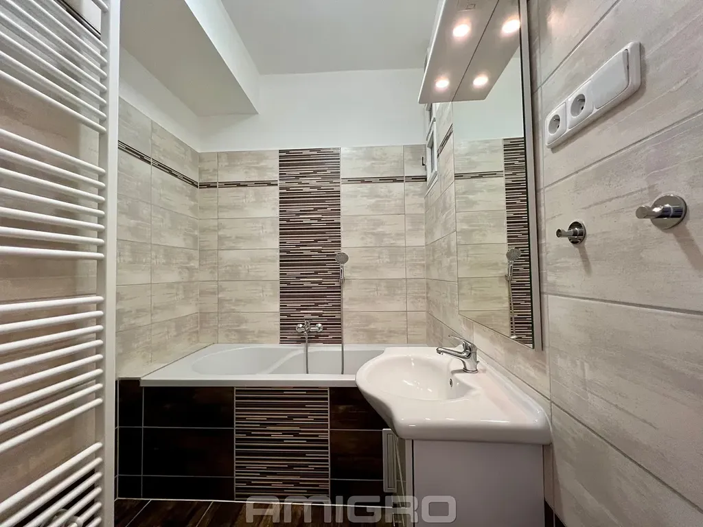 Byt se nabízí k pronájmu včetně kuchyňské linky, sklokeramické varné desky a elektrické trouby.