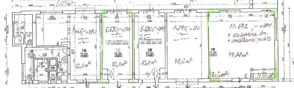 (+ el. energie dle spotřeby + podíl na spotřebě energie atd. spol. prostor + DPH, bez DPH, + provize RK)