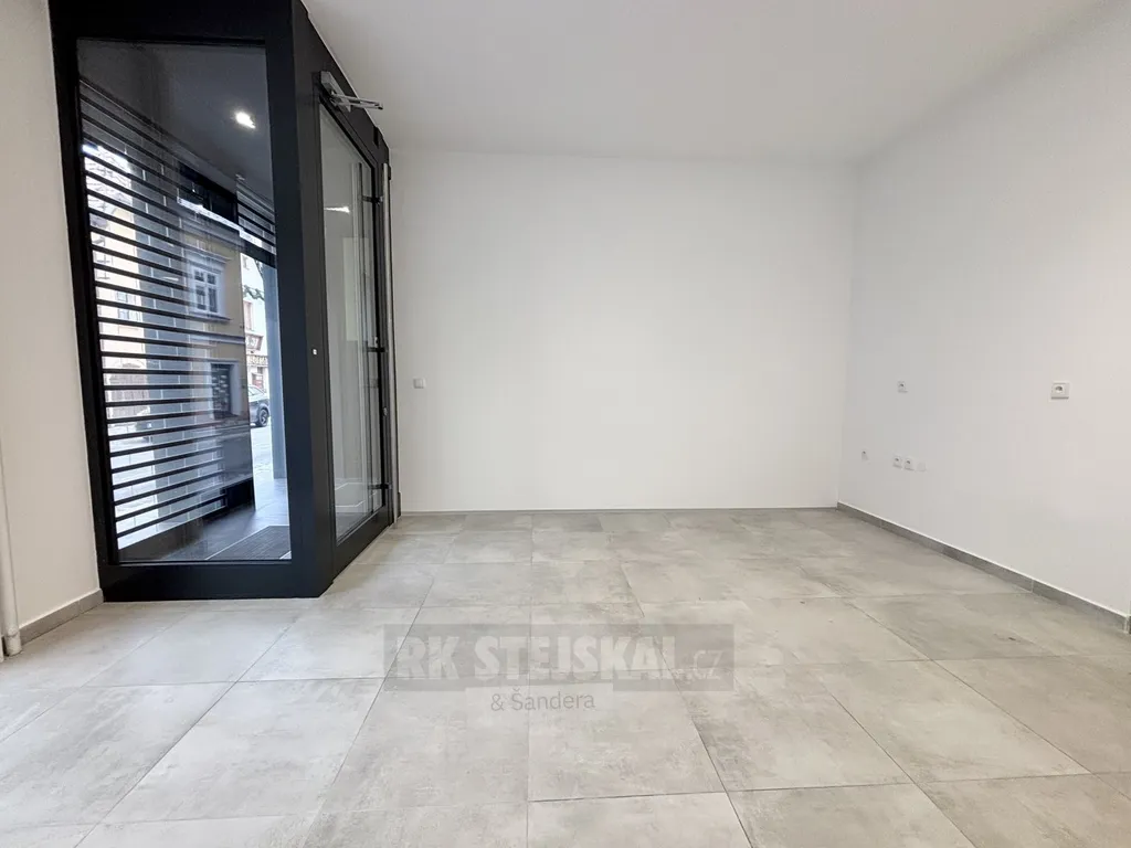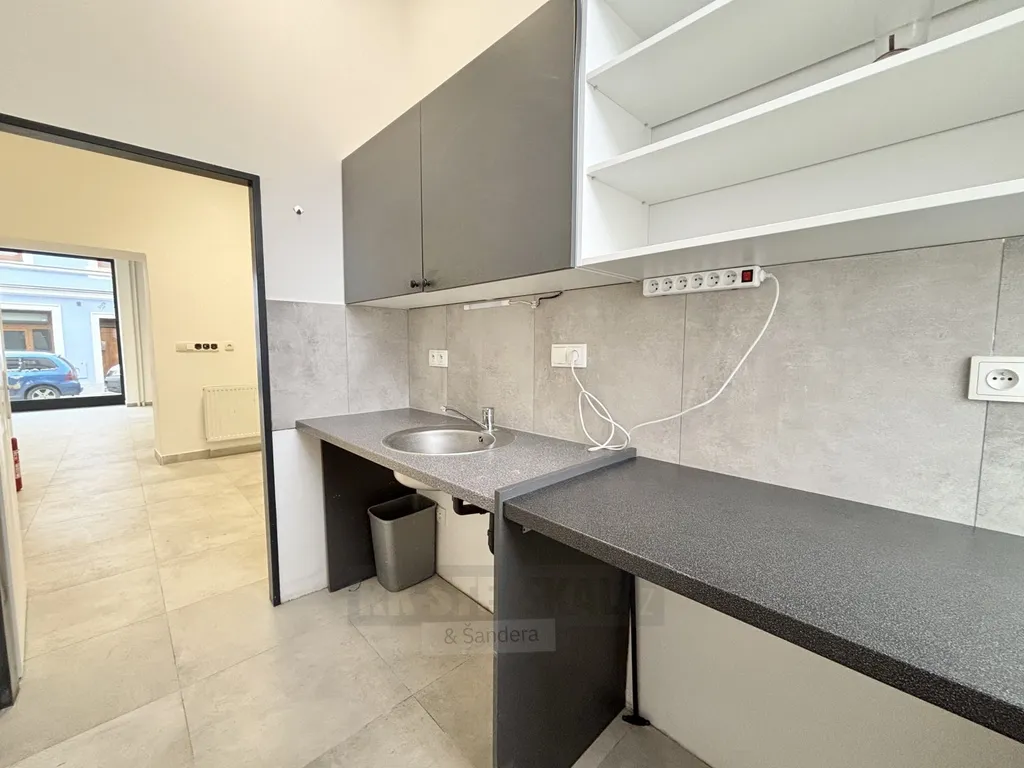 Prostor je situován v přízemí domu a nabízí výraznou velkou výlohu, která zajišťuje výbornou viditelnost a otevírá široké možnosti využití pro různé druhy podnikání. Vstup je vkusně řešen bezpečnostní roletou a kompletně prosklenými dveřmi, což podtrhuje moderní a profesionální charakter prostoru. Kanceláře jsou prakticky rozděleny na přední hlavní část s výlohou a zadní sekci, která poskytuje více soukromí a klidu. Součástí prostoru je vlastní kuchyňka a toaleta, která prošla kompletní rekonstrukcí. Interiér působí velmi reprezentativně především díky velkoformátové dlažbě položené v celé ploše kanceláří a celkové kvalitě provedené rekonstrukce. Samozřejmostí je stabilní internetové připojení prostřednictvím optického kabelu. Kromě hlavního proskleného vstupu z ulice je k dispozici také druhý samostatný vstup z boční chodby, který může být praktickou výhodou například pro zaměstnance, zásobování nebo oddělení klientské a provozní části. Velkou výhodou je rovněž možnost pronájmu parkovacích stání přímo na parkovišti za nemovitostí.