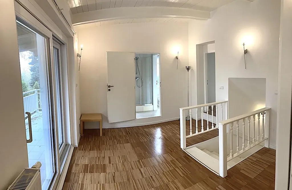 V přízemí se nachází vstupní hala, koupelna s technickou místností, prostorný obývací pokoj s kompletně vybavenou kuchyní a přímým vstupem na zahradu. V 1. patře se nachází hala se vstupem na terasu, do ložnic a do jedné koupelny. Všechny ložnice jsou neprůchozí, 2 ložnice mají vlastní koupelnu a vestavěnou galerii. V jedné ložnici je prostorná šatna a v jedné ložnici vestavěné skříně. V 1. podzemním podlaží se nachází technická místnost a sklep o ploše 24 m2.