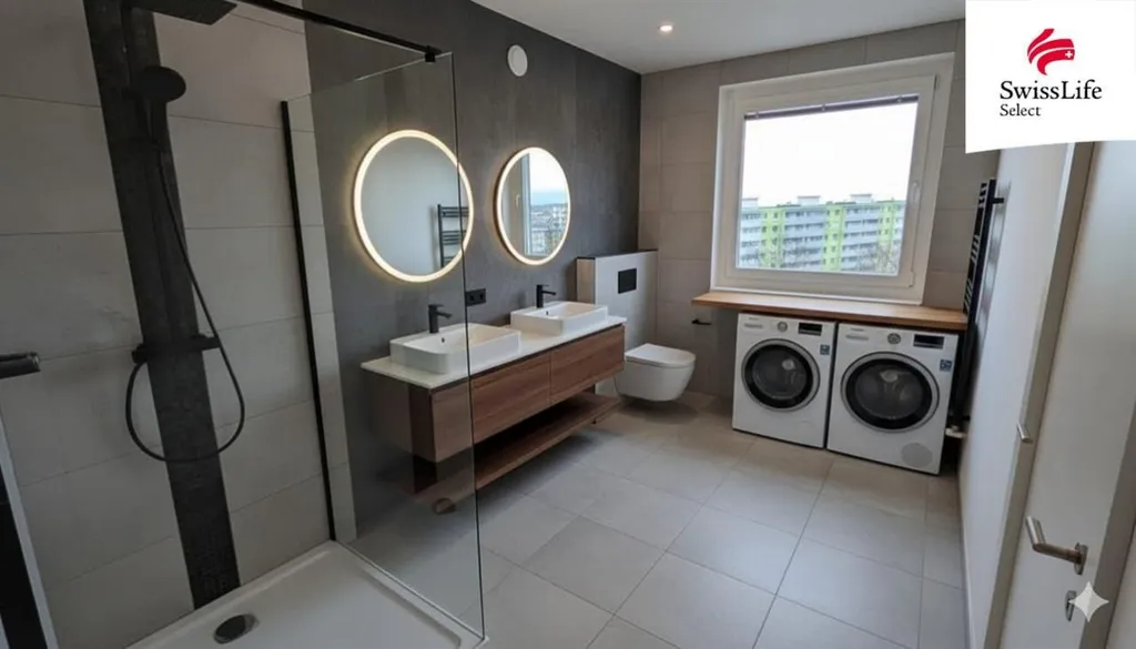 Díky dvojitým rozvodům vody a odpadů se zde při rekonstrukci nabízí možnosti, které u běžných bytů nenajdete: