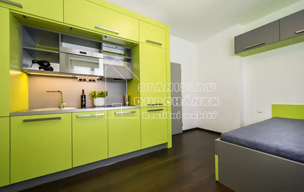 Ke dlouhodobému pronájmu je Vám od 1.2.2026 k dispozici tento samostatný pokoj s kuchyňským koutem, Praha 8-Kobylisy, ul. Střelničná, 1 minutu chůze od metra C-Ládví.