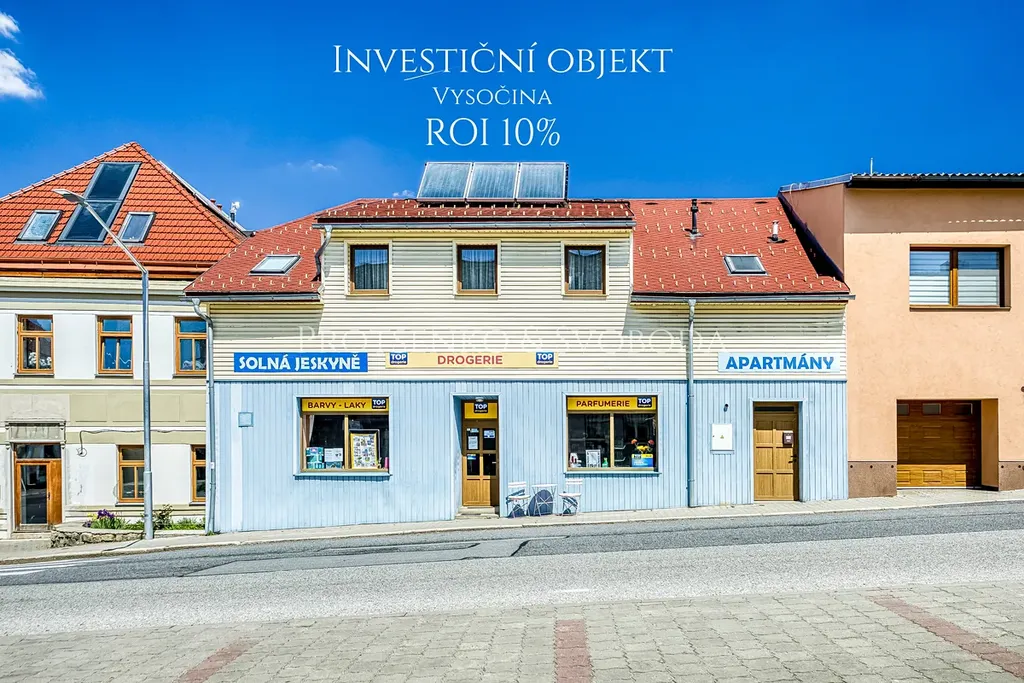 Společnost Protsenko & Svoboda v zastoupení majitele nabízí jedinečný komerční objekt v srdci městyse Batelov — plně funkční, výdělečný a ve výborném technickém stavu. Objekt kombinuje relaxační zónu (vyhřívaný bazén, infrasauna, solná jeskyně), obchodní jednotku a dva apartmány ve druhém podlaží určené k pronájmu. To vše v designovém kabátě s prvky typickými pro tradiční americkou komerční architekturu 20. století – obkladová fasáda ve stylu „shiplap“ či „clapboard siding“ s decentní barevností, která budově dodává vizuální charakter a přirozenou autoritu v místním veřejném prostoru.