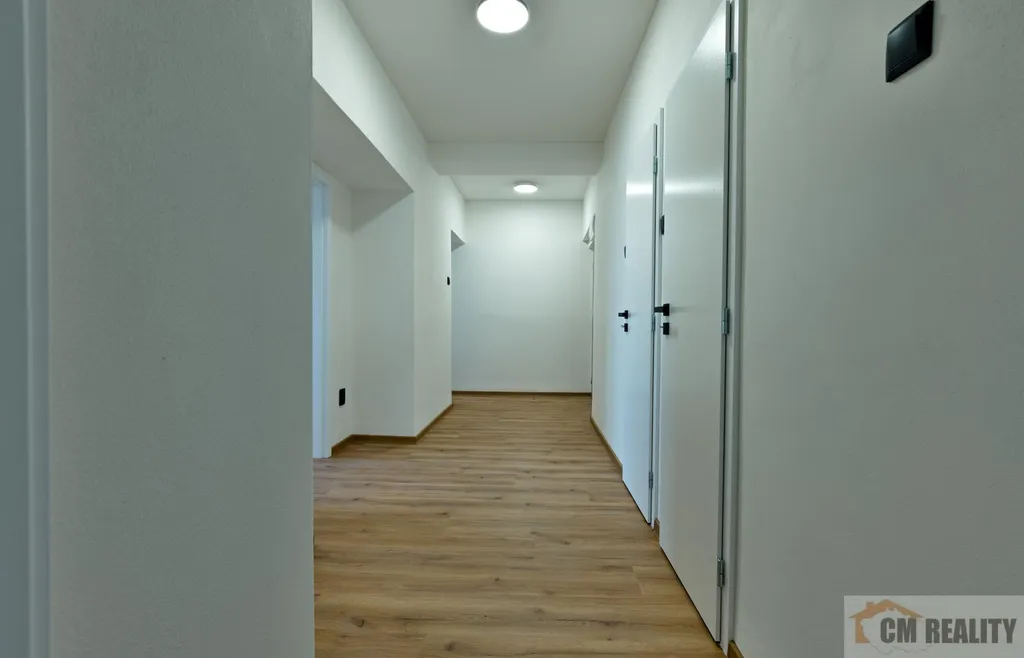 Podlahy: v chodbě a kuchyni jsou PVC podlahy, v pokojích parkety. Kuchyň je prostorná a vybavená kuchyňskou linkou, elektrickým sporákem a indukční varnou deskou. V lince je připravený prostor pro pračku s předním plněním.