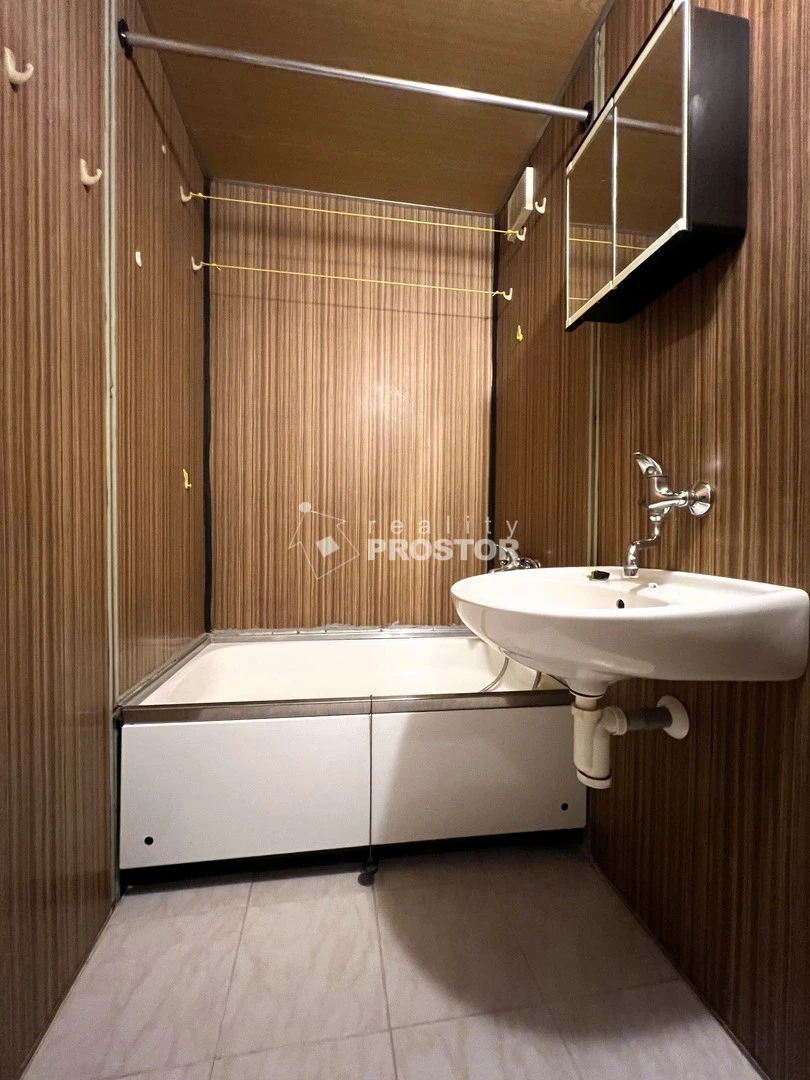 Svou dispozicí 2+kk, 42,30m2 nabízí prostorný obývací pokoj napojený na kuchyňský kout, světlou neprůchozí ložnici, vstupní vestibul který svou velikostí umožňuje umístění dalších úložních prostor a je z něj vstup na samostatné WC a do koupelny s menší vanou. V -1 PP je uzamčená sklepní kóje.