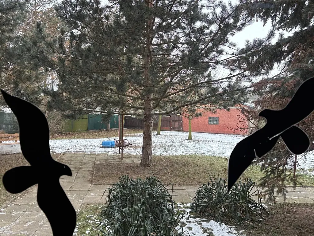 U domu je zeleň, stromy a místo k posezení, které využiješ hlavně od jara do podzimu.