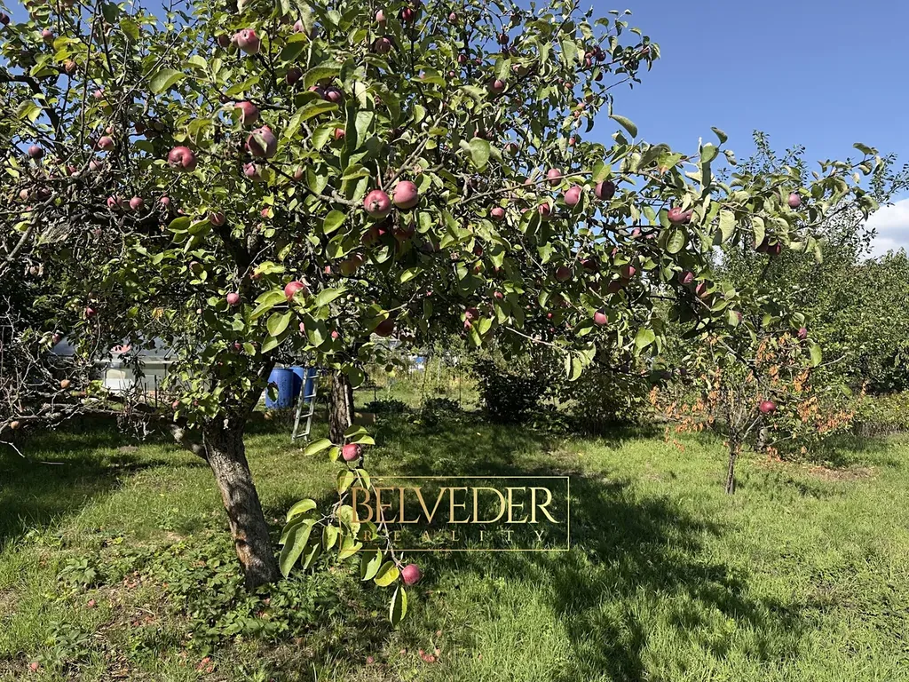vysazené ovocné stromy a keře: hroznové víno, broskev, třešeň, jabloň, meruňka, ořešák
