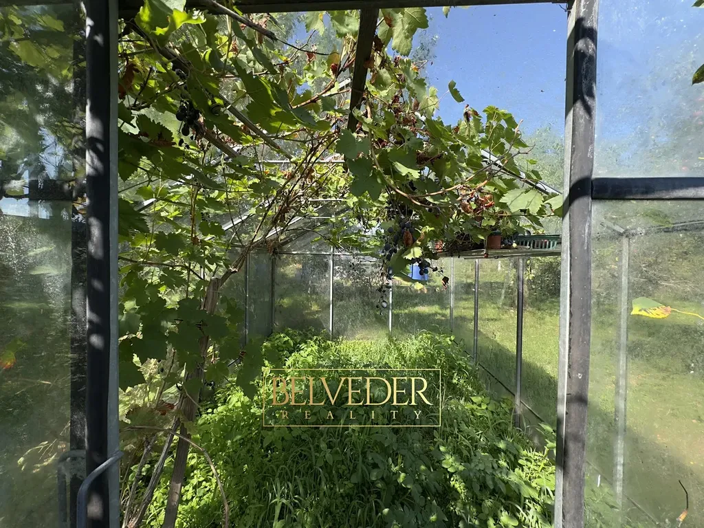 ovocné stromy a keře: hroznové víno, broskev, třešeň, jabloň, meruňka, ořešák