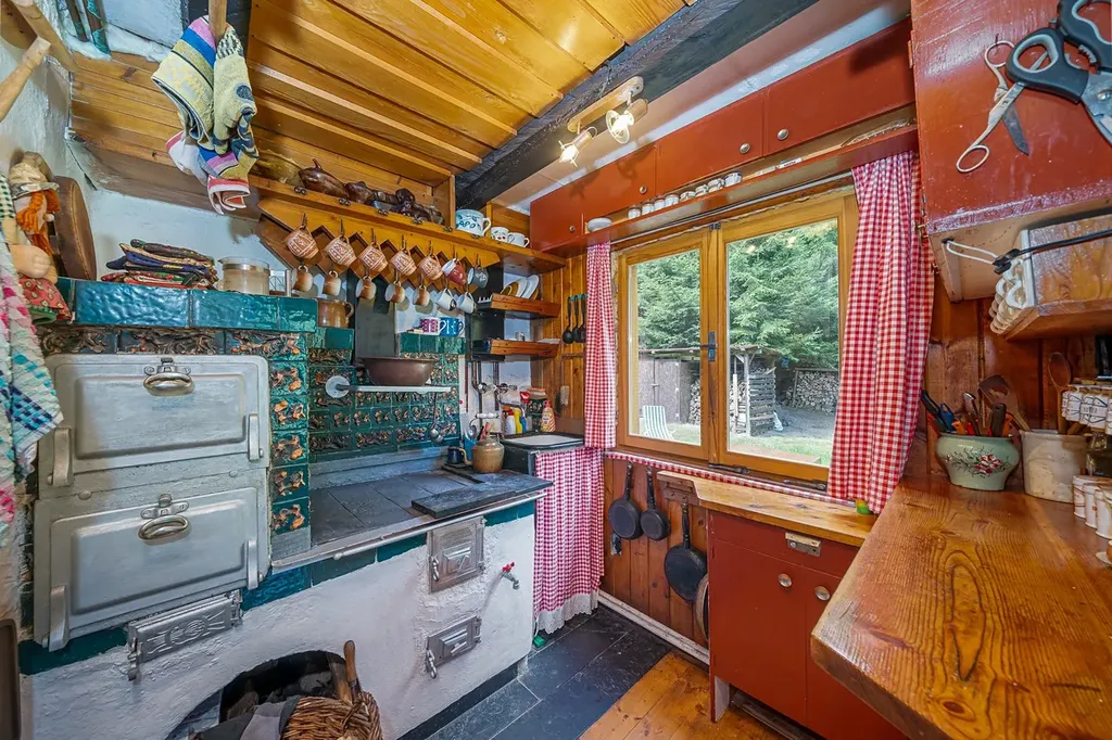 V hlavní obývací místnosti v přízemí je krb, v kuchyni stylová kamna na vaření a v technické místnosti kotel na tuhá paliva s elektrokotlem. Tento systém zajišťuje topení do radiátorů a ohřev vody.
