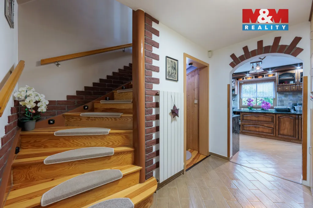 Výjimečným benefitem je obytný suterén s wellness zázemím – saunou, koupelnou, prádelnou a dostatkem úložných prostor. Další potenciál nabízí půda vhodná k vybudování dalších obytných místností. Interiér je vybaven nadstandardními materiály, kuchyňská linka na míru tvoří přirozené srdce domu. Dům disponuje dvěma kompletními soukromými koupelnami a jedním samostatným WC.