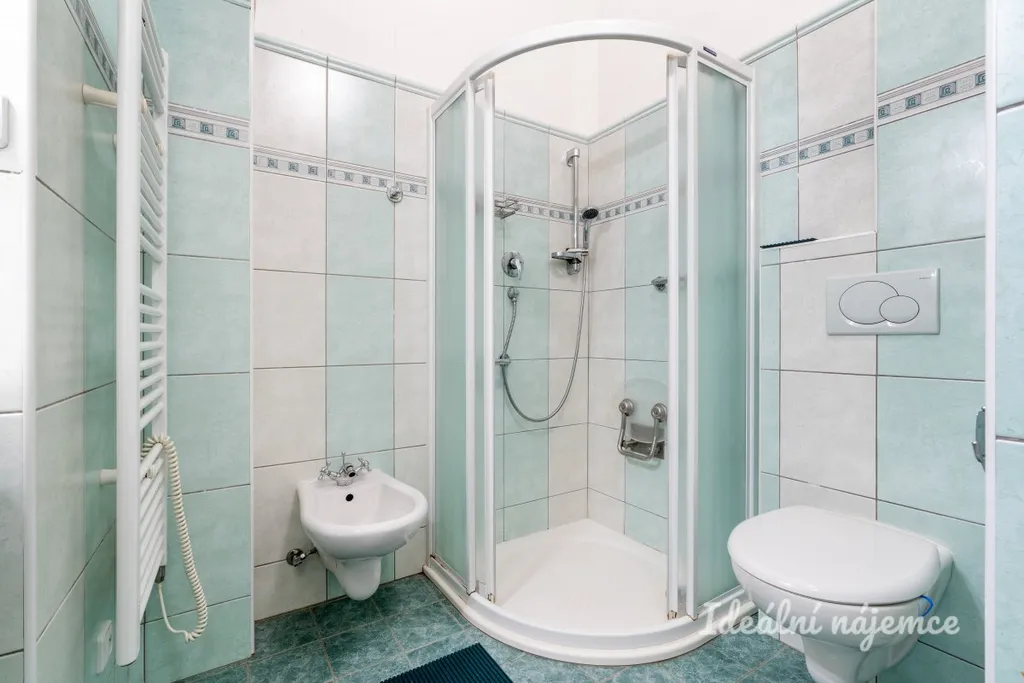 Kuchyně je moderně pojata a disponuje veškerými potřebnými spotřebiči včetně myčky, lednice s mrazákem, elektrické a mikrovlnné trouby či digestoře. Najdete zde také příjemný jídelní kout se stolem a židlemi. Samostatný pokoj slouží jako prostorná ložnice s manželskou postelí a dostatkem úložných prostor pro vaše věci. Koupelna nabízí sprchový kout, umyvadlo a toaletu. Velkým benefitem je také praktický sklep náležející k bytu, který oceníte pro uskladnění sezónního vybavení.