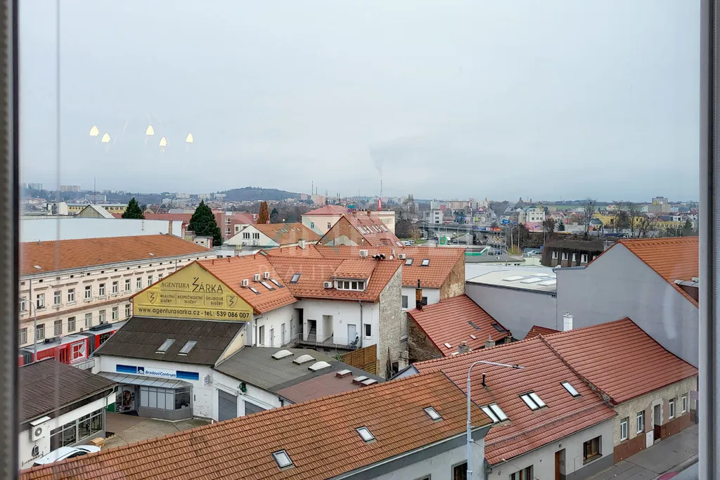 Po vstupu do bytu se otevře prostorná chodba, z níž se dostanete do všech místností. Obývací pokoj vás přivítá světlem a příjemnou atmosférou. O tu se stará cihlový krb v rohu, který dělá z této místnosti srdce celého bytu. Ať už chcete posedět s knihou nebo si vytvořit relaxační atmosféru při práci, tady to půjde samo. Ložnice působí jako klidová zóna – dřevo, světlo, teplé tóny a výhled na město. Je to prostor, kde se snadno vypnete po celém dni. Kuchyň je jednoduchá, praktická a útulná, ideální pro vaření bez chaosu.