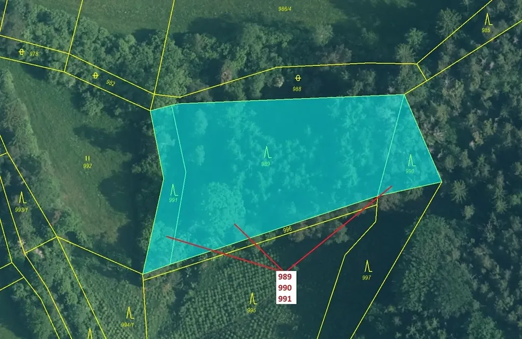 Lesní pozemky o výměře 4 276 m2, parcelní čísla 989, 990, 991, podíl 1/1, katastrální území Čepice, obec Rabí, obec s rozšířenou působností Sušice, okres Klatovy, Plzeňský kraj. Po těžbě.