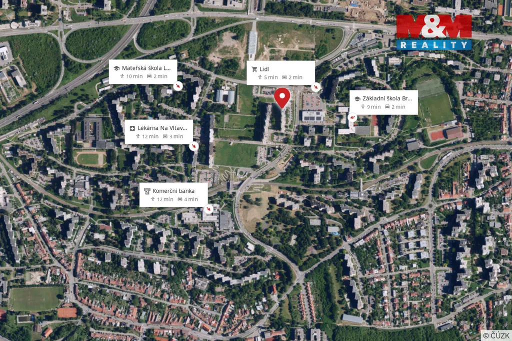 Parkování je možné na okolních parkovištích. Zastávka MHD je vzdálena o bytového domu přibližně dvě minuty chůze.