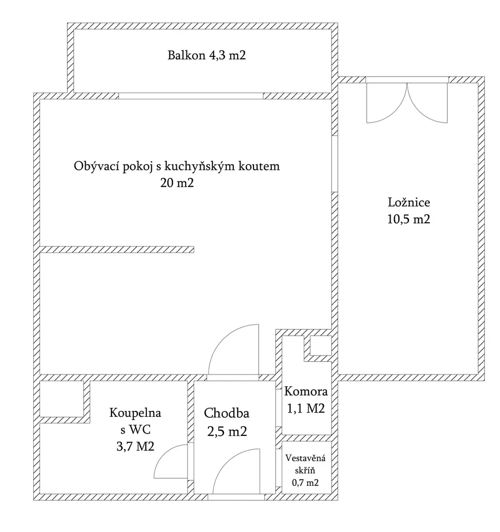 • vestavěná skříň: 0,7 m²