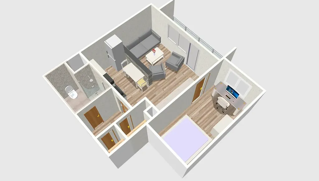 Byt je svou velikostí a dispozicí ideální pro 2 osoby.