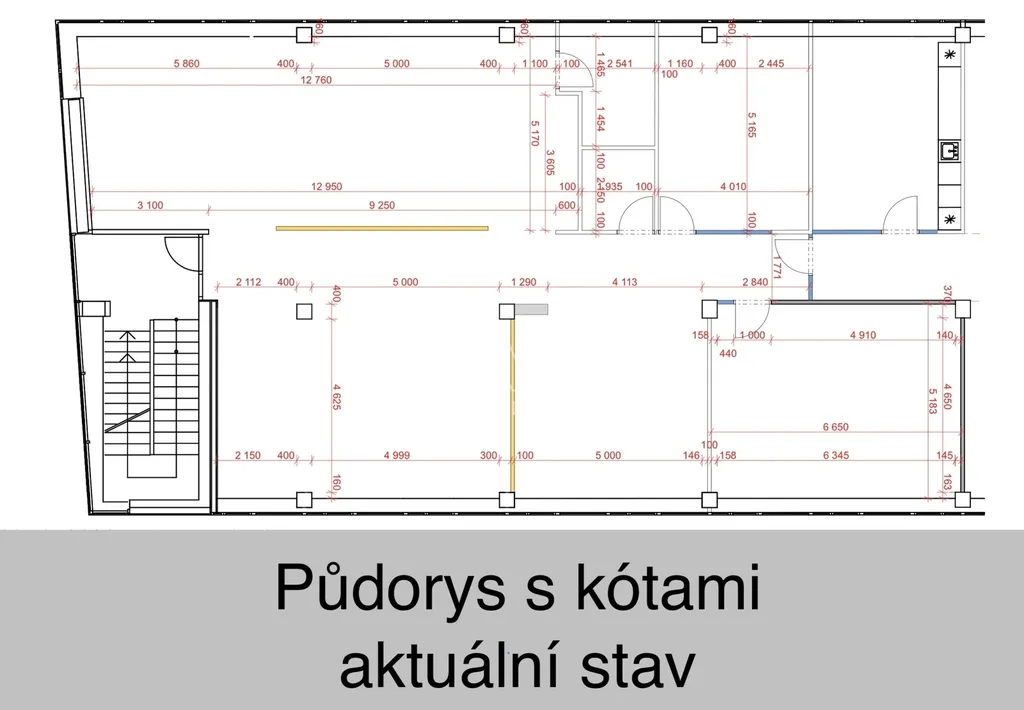 Aktuální dispozice prostor (lze upravit dle potřeb nájemce):