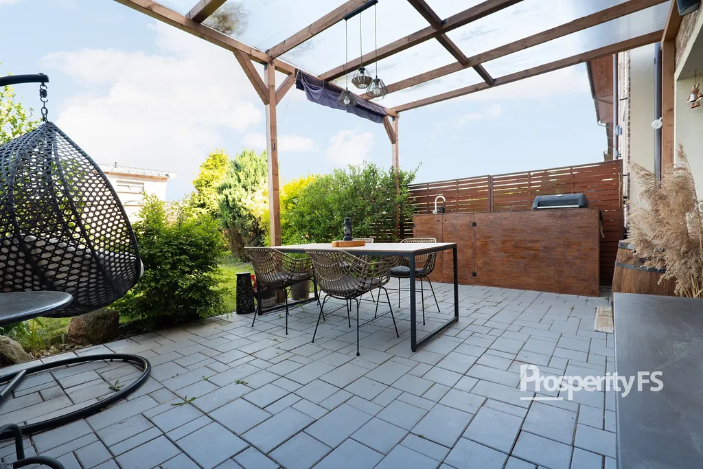 K domu náleží zahrada se zastřešenou terasou, zahradním domkem, grilem a venkovní sprchou. Kousek od nemovitosti se nachází naučná stezka a biokoridor. Přímo v obci pak naleznete základní a mateřskou školu, dětské hřiště, obecní úřad či Retail park s obchody jako například Billa, Popeys, McDonald`s, Pepco nebo Super zoo.