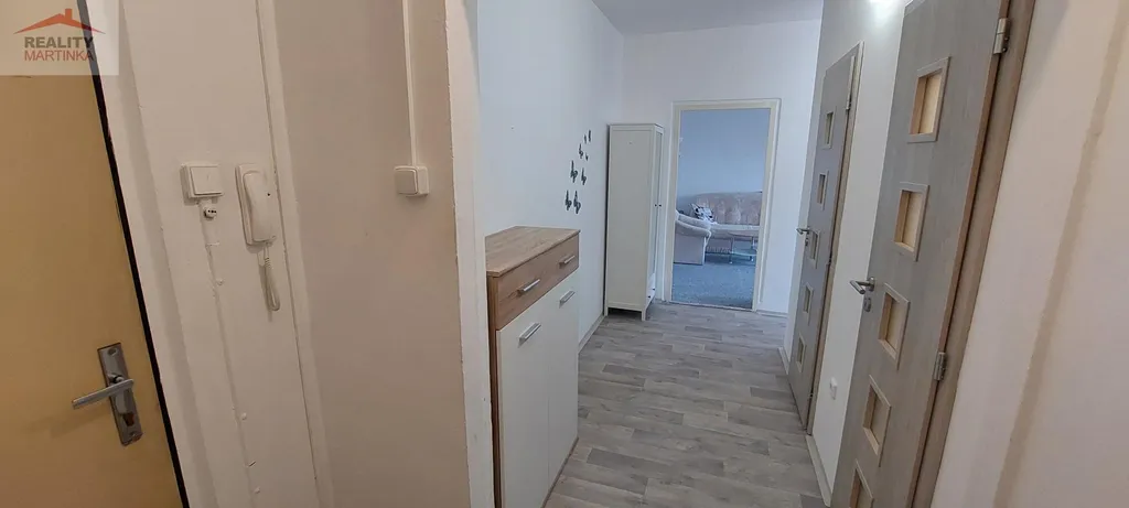 Nabízíme k pronájmu částečně zařízený byt o dispozici 2+1 s balkónem ve Valašském Meziříčí na ul. Bratří Čapků. V bytě je zděná koupelna se sprchovým koutem, umyvadlem se skříňkou, zrcadlem s osvětlením, sušákem a pračkou, v kuchyni je kuchyňská linka s kombinovaným sporákem, digestoří, lednicí, mikrovlnkou, jídelním stolem a židlemi, v obývacím pokoji se vstupem na balkón je sedací souprava s křeslem a taburetem, konferenční stolek a TV stolek. V ložnici zůstává šatní skříň. V chodbě zůstává věšák, lavice, a komoda. V bytě jsou nové vnitřní dveře. Byt se nachází ve třetím patře panelového bytového domu bez výtahu, dům je po revitalizaci včetně zateplení. V chodbě a v kuchyni je PVC podlaha. Byt má průchozí řešení pokojů, topení ústřední dálkové. Cena nájmu 12.000 Kč/měs. + zálohy na služby a energie 4.000 Kč/měs. + elektřina cca 800 Kč/měs. + plyn cca 250 Kč/měs. Kauce 24.000 Kč. K bytu náleží sklepní kóje, parkoviště u domu. Jedná se o klidnou lokalitu v centru Valašského Meziříčí. K pronájmu byt 2+1 s balkónem ve Valašském Meziříčí.