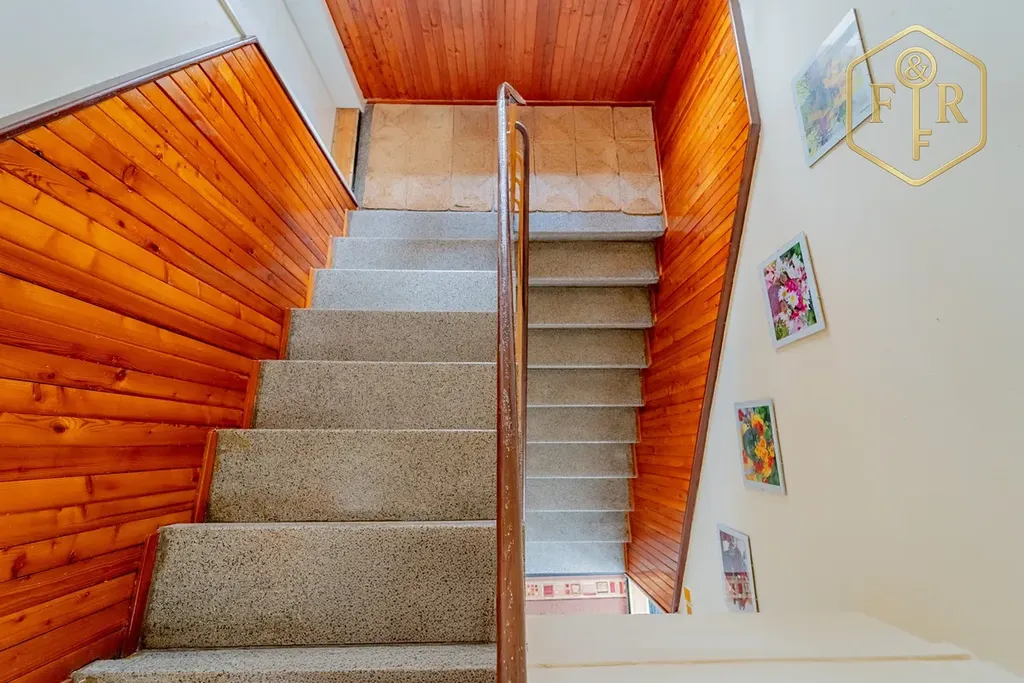 Užitná plocha je 246 m² (PP 56 m², 1.NP 110 m², podkroví 81 m²) + balkon >5 m² + stodola + garáž + dílna + skleník.