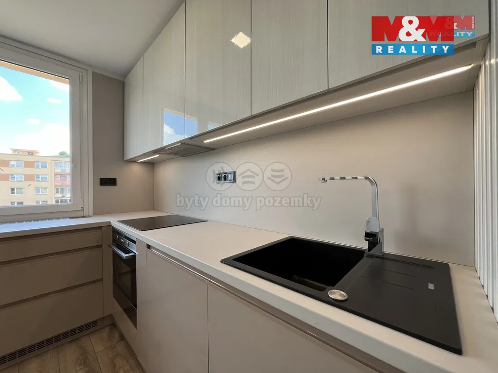 Nabízíme vám k pronájmu čerstvě zrekonstruovaný byt 3+KK v ulici Šípková na Severní Terase. Bytová jednotka prošla kompletní rekonstrukcí doslova od podlahy ( ty jsou zde mimochodem příjemné, vinylové). Nová je elektřina, omítky i štuky, čerstvě vymalováno. Jsou tu snížené sádrokartonové stropy s úsporným LED osvětlením. Vyzděné jádro ukrývá velkou koupelnu s walk-IN sprchovým koutem a samostatný záchod. Úložné prostory Vám nabídne vestavná skříň v chodbě. Třešničkou na dortu je vymazlená kuchyně plně osazená vestavnými spotřebiči ( trouba, varná deska, myčka, lednička ). Byt se nachází v 6. NP revitalizovaného panelového domu ( energetický štítek "C" ), který je na okraji parku. Je zde kompletní občanská vybavenost.