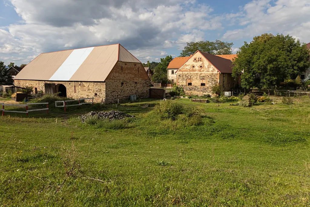 Nabízíme k prodeji statek v obci Bžany s celkovou plochou pozemku 3.749 m². Statek se skládá z hlavní budovy, výminku, stájí, průchozích stodol a dílny, které tvoří uzavřený prostor a naprosté soukromí. V hlavní budově se nachází dva byty, každý v jednom podlaží. V přízemí byt 2+kk - velký obývák propojený s kuchyní o celkové ploše 38 m2 a koupelna, na kterou navazuje prostorná ložnice 21 m2. V patře pak 3+kk - 2 pokoje (každý cca 20 m2), pokoj s kuchyňským koutem 22 m2 a dvě koupelny. Venkovní posezení s předzahrádkou dotváří pocit klidu a pohody. Na hlavní budovu navazuje stavba s technickou místností a stáj se 6 boxy pro koně. Stavba je průchozí, tak aby se dalo projít do výběhu i na dvůr. Vedle stájí je okrasná zahrada společně se záhony pro vlastní sadbu. Další budovou je stodola, která nyní slouží k uskladnění sena, i tato stodola je průchozí do dalšího výběhu. V druhé části této stavby je prostorná dílna cca 100 m2 a uhelna. Statek má dvě studny a potok, který protéká za objektem. Nikdy nebyl rozvodněn a nejedná se o povodňovou zónu. Statek je napojen na kanalizaci, vodovodní řád, v celém objektu je rozvedena nová elektřina v mědi, nový rozvod topení a kotel na tuhá paliva. Také byly zhotoveny nové střechy na hlavní budově a obou stodolách.