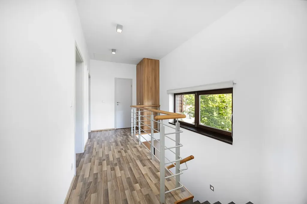 Dům je dispozičně řešen jako 4KK s garáží, technickou místností a dvěma terasami o užitné ploše 159m2, přičemž velikost teras činí 31m2. Dům se nachází na pozemku 751m2. Dům byl kolaudován v roce 2006 je ve velmi dobrém stavu s velmi pěknou se zahradou zaručující naprosté soukromí. Velkou výhodou je rovněž možnost rozšíření domu v 1 n.p, neb to umožňuje ÚP a stávající majitel si v minulosti nechal zpracovat technickou studii k této možnosti. Dům je napojen na veškeré IS, vytápění je zajištěno plynovým kotlem s radiátory. Dům je v zachovalém stavu a doporučuji osobní prohlídku. Kolovraty jsou moderní pražská městská čtvrť, jež má kompletní občanskou vybavenost a to včetně základní a mateřské školy. Kolovraty mají rovněž vlakové spojení do centra města(5. minut pěšky od domu) a velmi dobré napojení na dálnici D1 a v budoucnu i na městský okruh, který je již v procesu stavby. Kolovraty, díky své poloze na jihovýchodě metropole mají ideální polohu pro každodenní spojení s centrem města, avšak nedaleko přírody s množstvím zajímavých přírodních lokalit.