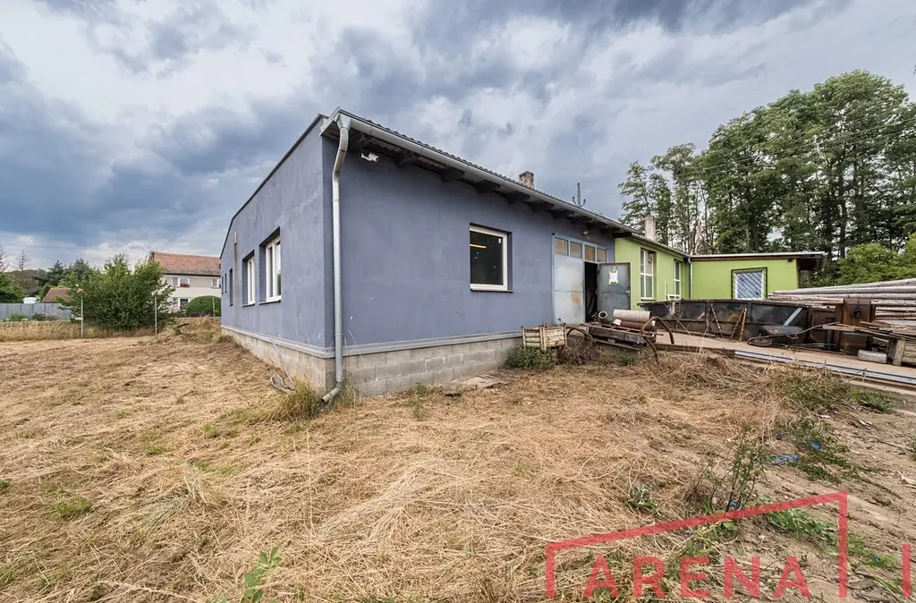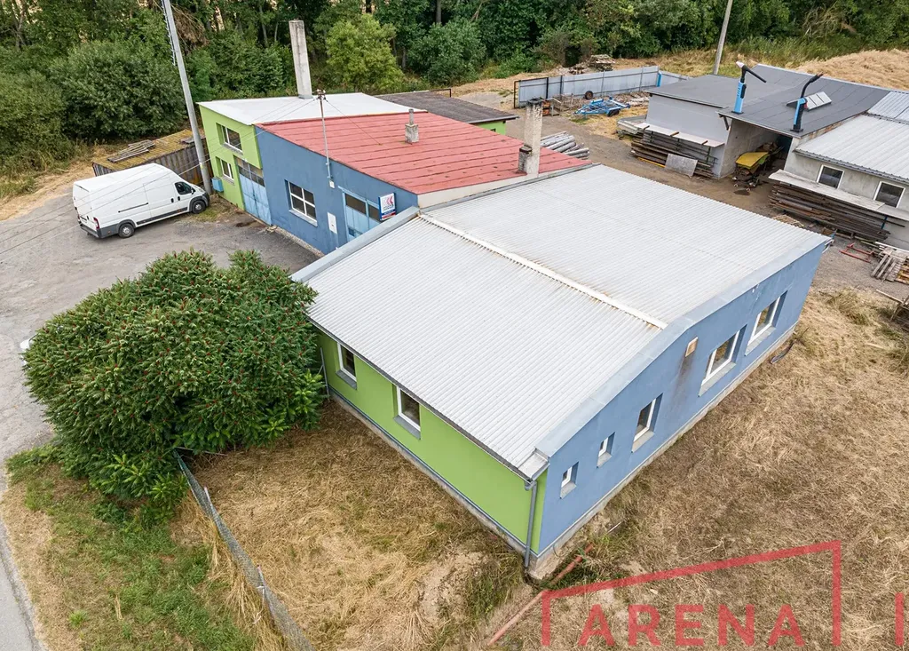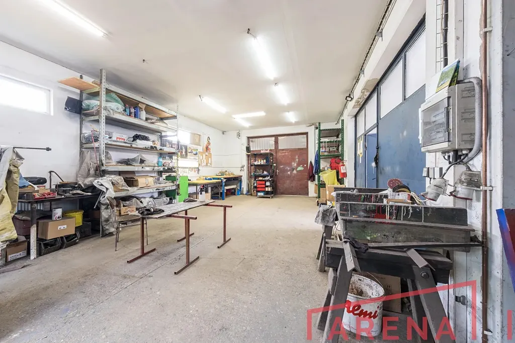 Novostavba z roku 2017, ocelová konstrukce s izolačními panely, plocha 450 m². Betonové podlahy, vrata 6 × 4 m a 4 × 3 m, rozvody stlačeného vzduchu, zářivkové osvětlení.