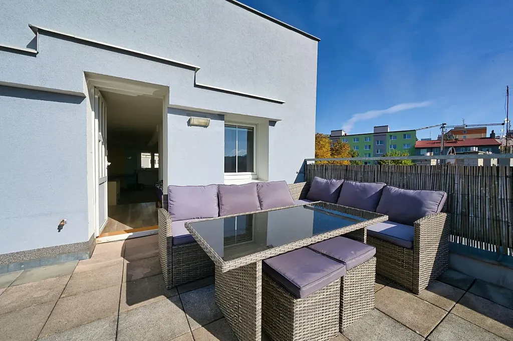 Dominantou bytu je prostorná terasa o rozloze 36m², ze které je nádherný výhled na velkou část Plzně.