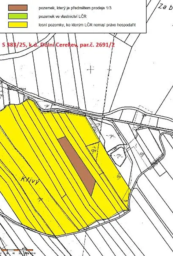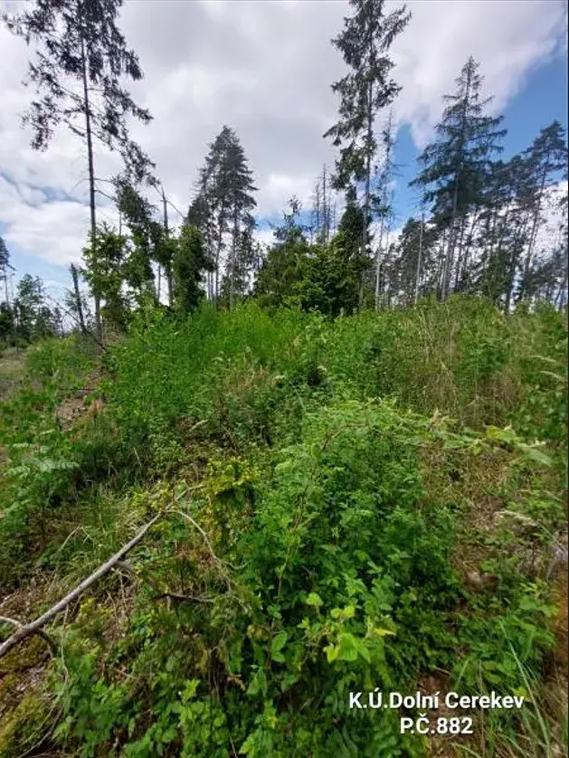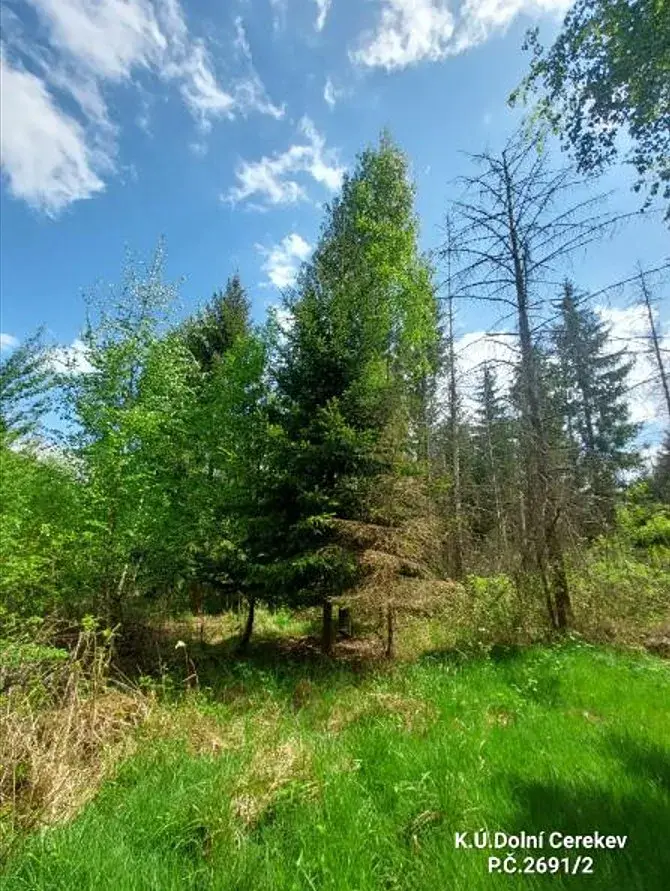 Jedná se o prodej spoluvlastnického podílu o velikosti Id. 1/3 k celku lesních pozemků parc. č. 882 o celkové výměře 5577 m2 a parc. č. 2691/2 o celkové výměře 6240 m2, obklopených pozemky jiných vlastníků, nezalesněných. Na pozemku parc. č. 2691/2 roste několik smrků a bříz.