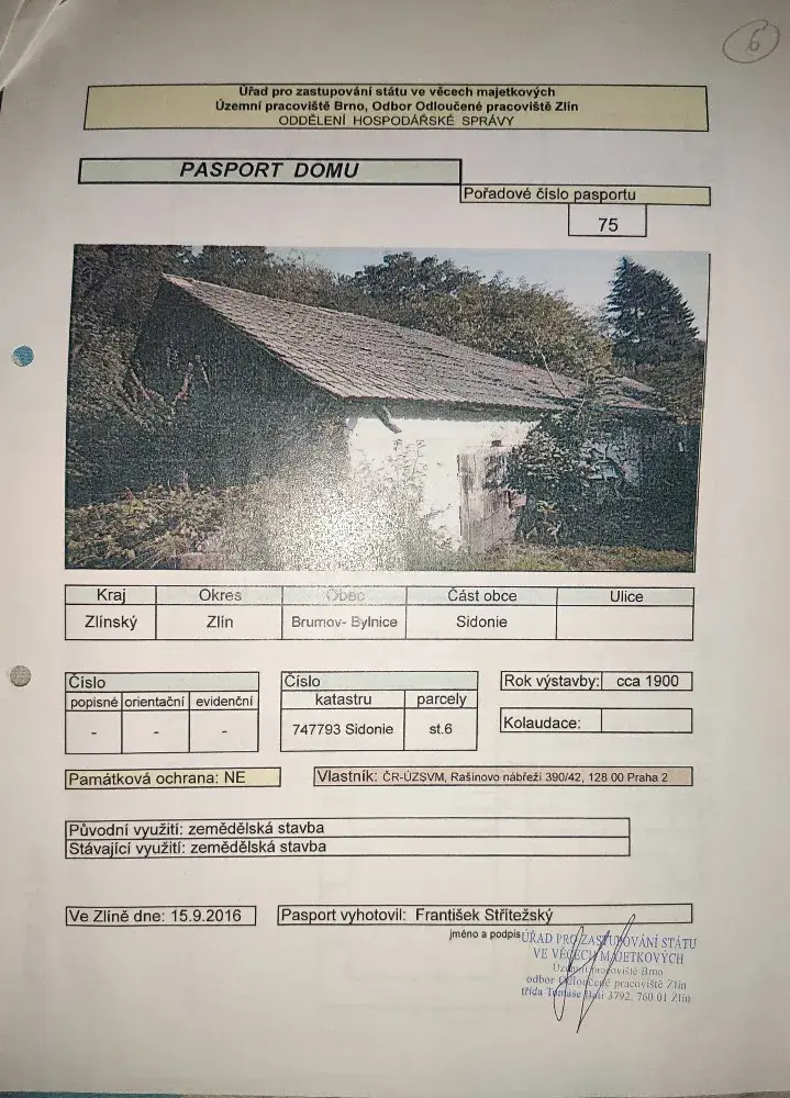 na vlastním pozemku v části Rajčurna. Objekt je ve velmi špatném technickém